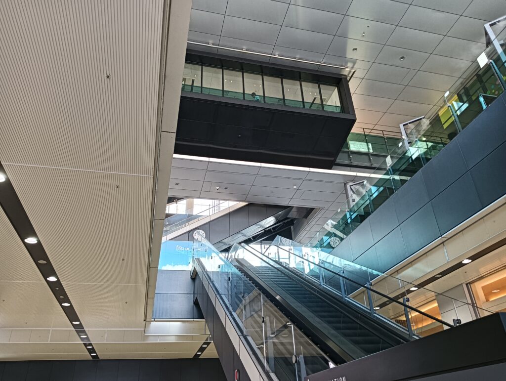 駅構内は7階建て、エスカレーター、エレベーター、階段で移動します。